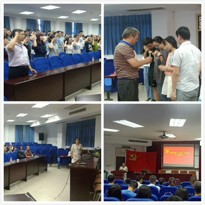 会议在齐唱《国歌》中拉开序幕,首先,王淼书记宣布新入党党员名单,张启峰书记为新入党党员佩戴党员徽章;并带领全体党员对着党旗进行入党宣誓;接着,王淼副书记带领全体党员重新学习党员的八项义务,强调每位党员在日常工作生活中的义务与职责,坚定理想信念,践行党员党性。然后,由张启峰书记宣读bat365平台官网关于优秀党员、优秀党务工作者、优秀基层党支部的表彰以及bat365平台官网关于“学习型党支部”和“学习标兵”的表彰,并向获奖党员及基层党支部办法奖牌和荣誉证书。