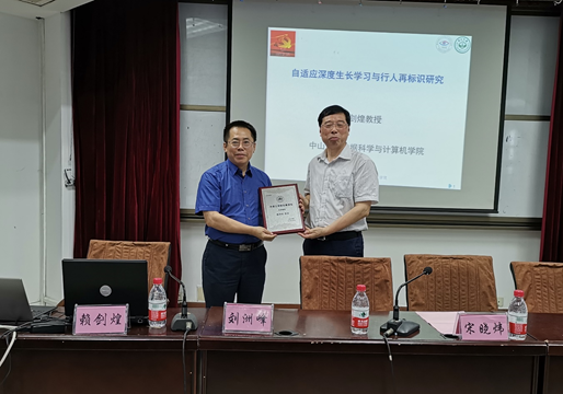 2019年7月1日上午,应bat365bat365平台官网邀请,中山大学赖剑煌教授来bat365龙湖校区作了题为《自适应深度学习与行人再识别方法》的精彩报告。副校长刘洲峰教授、科技处处长宋晓炜教授出席参加。报告会由bat365平台官网院长刘卫光教授主持,刘洲峰副校长为赖剑煌教授颁发了“bat365平台官网弘德讲坛主讲嘉宾”证书。bat365平台官网和电信学院的教师、研究生聆听了报告。