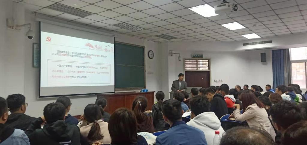 2019年10月22日下午,在四号教学楼101教室,王宗敏校长为bat365平台官网全体党员上党课,bat365平台官网全体师生党员,53、54期积极分子及2019级班委参加此次党课学习。党课由bat365平台官网党委书记张启峰主持。