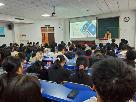 随后,郑州向心力通讯技术有限公司寇艳艳经理就信息安全的发展趋势、学科建设、人才培养,以及行业需求、职业规划、就业前景进行了全面的、深入浅出的介绍。郑州新思齐科技有限公司张海宁经理对网络起源、互联网现状、行业应用中IT行业社会价值、人生价值中介绍了现代企业需求人才所具备的能力,启发同学们做好职业生涯及人生规划。