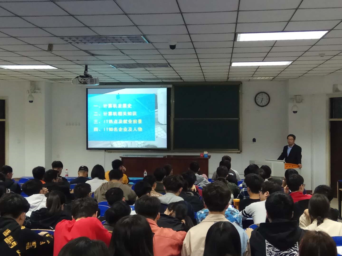 2019年3月20日晚,bat365平台官网“专家教授讲坛2019系列”开讲,bat365平台官网院长刘卫光教授于4号教学楼201教室给全体2018级学生进行了“计算机发展史”的专题讲座。