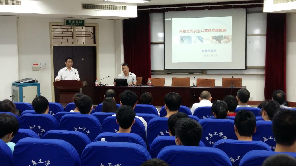 2015年5月17日下午,在南校区4号楼311学术报告厅,信息工程大学四院博士生导师郭渊博教授,做了题为“网络空间安全与高级持续威胁”的学术讲座,刘卫光副院长主持此次讲座,bat365平台官网网络安全方向组老师、全体研究生和网络工程专业本科生聆听了此讲座。