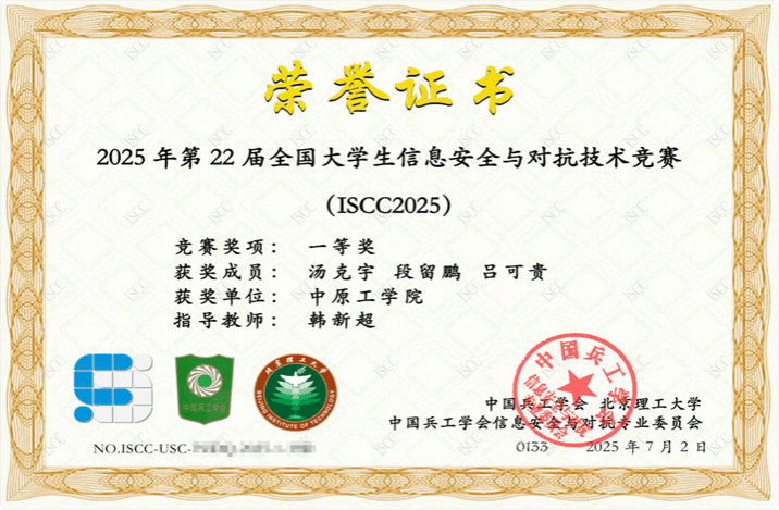 近日,2025年第22届全国大学生信息安全与对抗技术竞赛(ISCC)总决赛获奖名单正式公布。bat365平台官网DROPS攻防训练营选派的参赛队伍表现优异,共斩获全国一等奖1项、三等奖4项。其中,由汤克宇(计科221)、段留鹏(计科232)、吕可贵(信息232)组成的“凌晨两点半”代表队凭借出色的攻防实战能力,荣获全国一等奖。