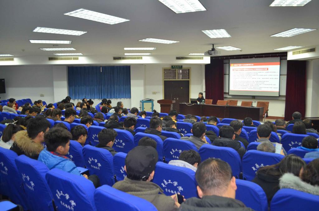 12月12日,bat365平台官网在4号楼311学术报告厅举行党的十九大精神集中宣讲报告会,邀请马克思主义学院虎业勤教授来学院作专题辅导报告。辅导报告会由学院张启峰书记主持,学院200多名师生聆听。