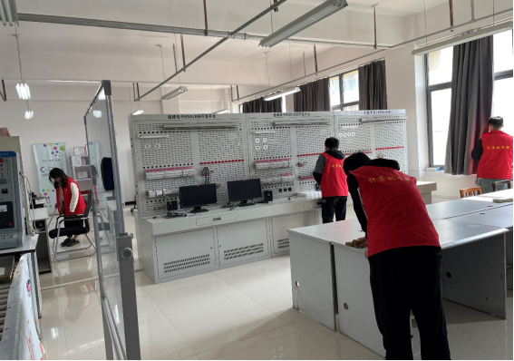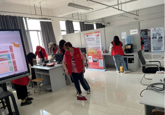 6号上午,入党积极分子在实验室集合,并带上打扫工具,对实验室的桌面进行擦拭,对地面的卫生进行打扫,整理各类实验器材,高标准的完成对实验室的卫生维护。