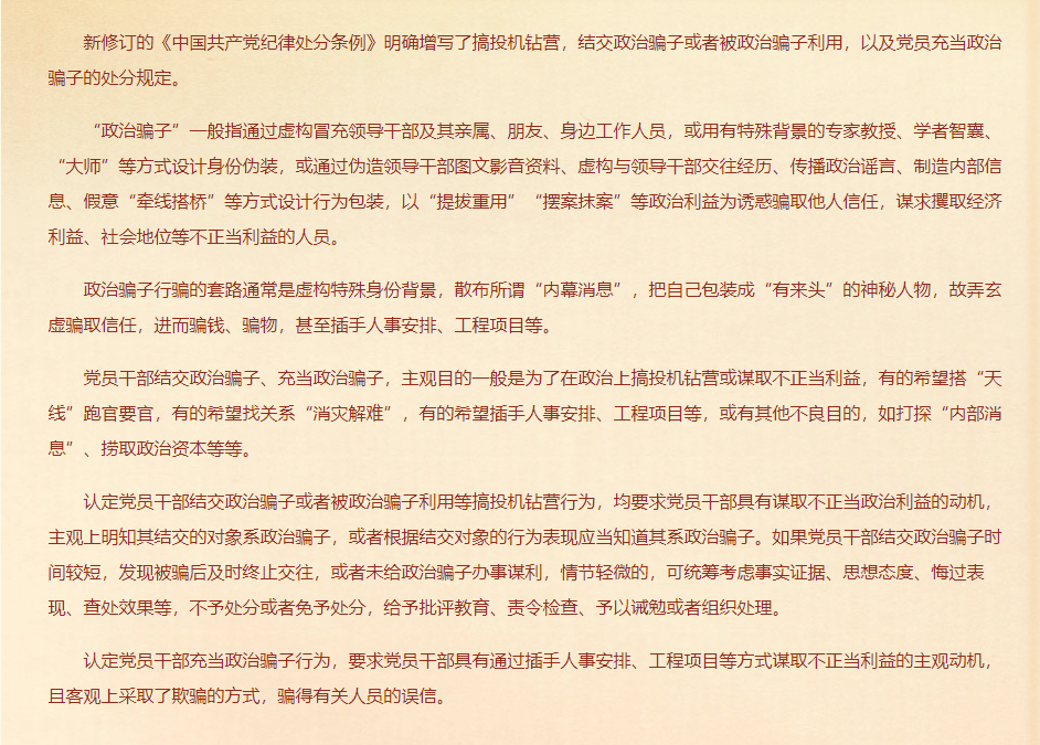 对结交、充当政治骗子的处分规定有哪些?