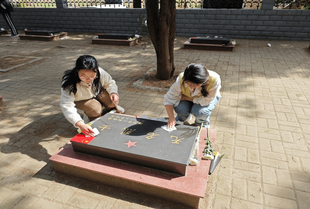 分组活动中,学生认真擦拭烈士墓碑,学习烈士们的事迹。献上小白花或卡片,表达对先烈们的敬仰和缅怀之情。积极分子、学生党员在陵园内的空旷区域进行集中分享和交流,畅谈感受、体会,抒发对革命精神的理解和如何在今后的学习和生活中传承和弘扬革命精神。