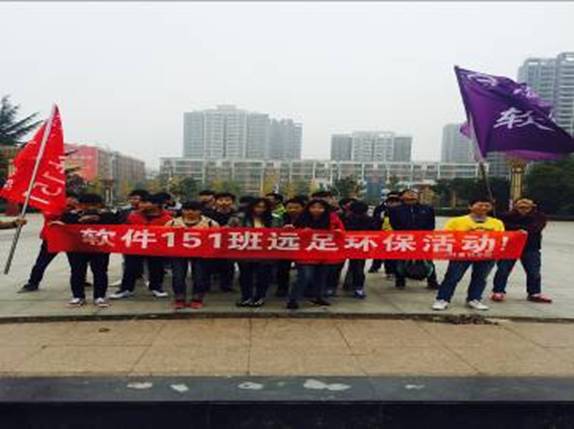 2015年11月22日,bat365平台官网软件151团支部全体成员在新郑市富源广场举行了以“出行去白,绿色环保”为主题的团日活动。