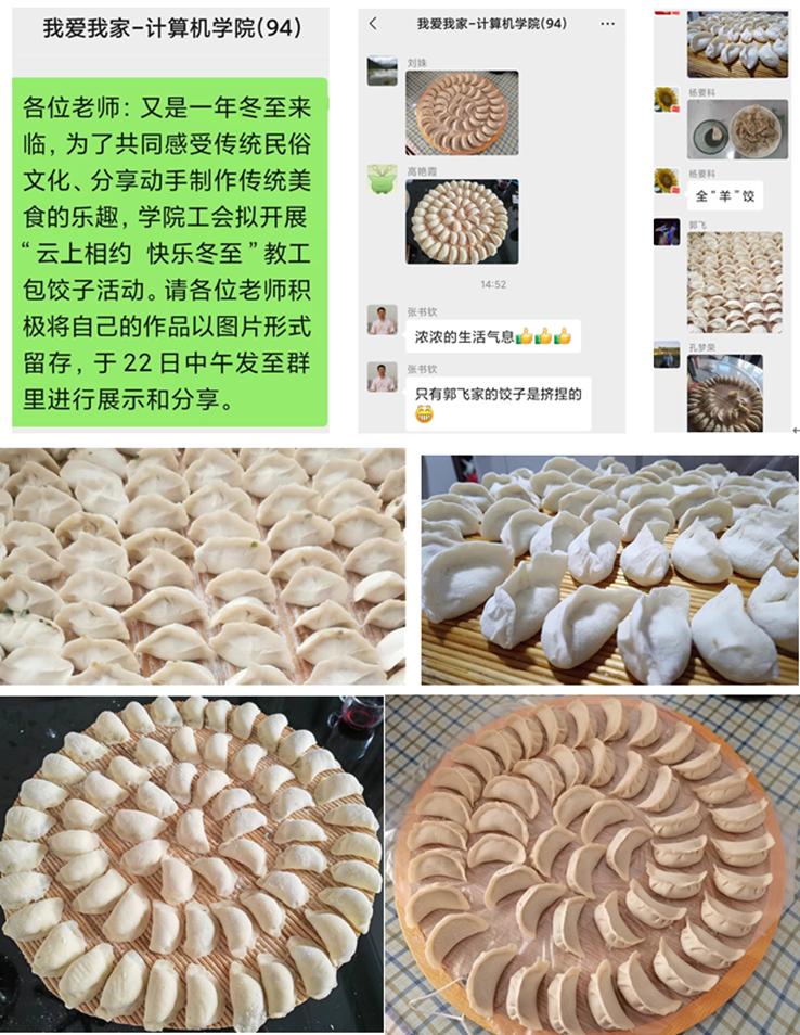 冬至是中国重要的民俗节日之一,俗话说:“冬至不端饺子碗,冻掉耳朵没人管。”冬至吃饺子是北方人的传统食俗。为了共同感受传统民俗文化、分享动手制作传统美食的乐趣,bat365平台官网分工会于12月22日开展了“云上相约,快乐冬至”教工包饺子活动。