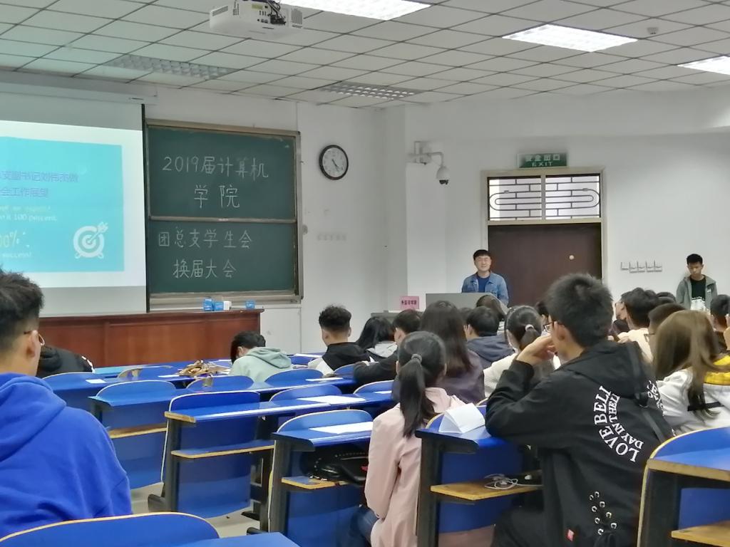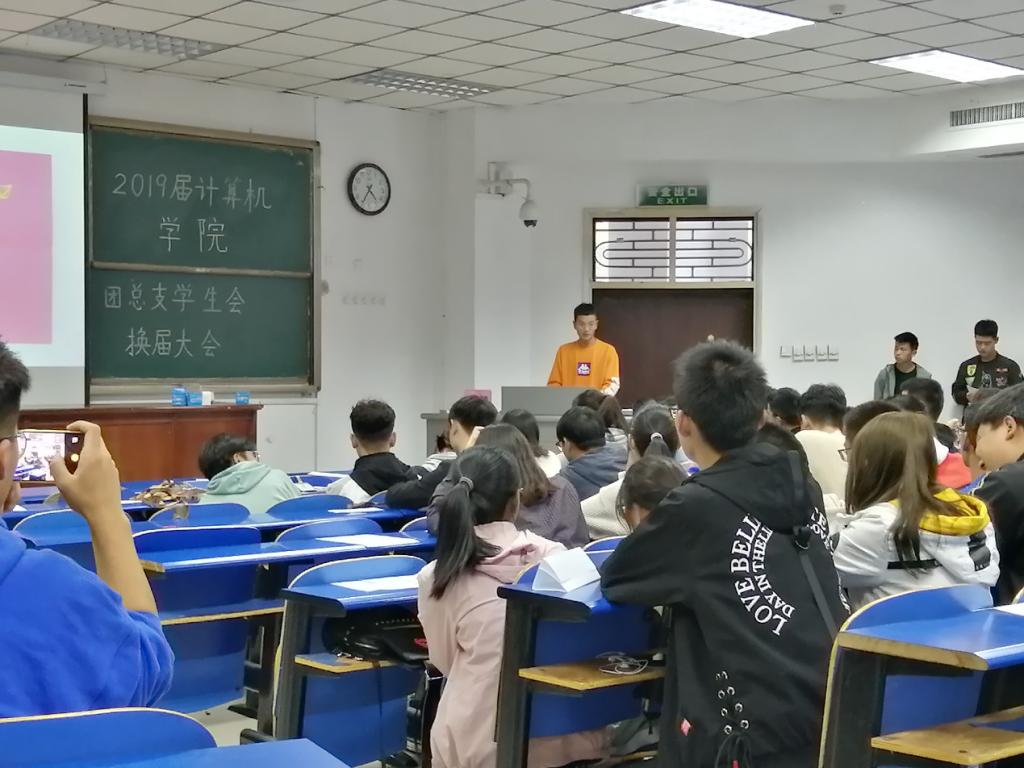 2019年10月18日下午,计算机学生会2019级换届大会在4号教学楼101教室成功举办。此次会议由2019届学生会体育部部长赵晓鸣主持,2019届bat365平台官网辅导员孙奇峰老师、学工办主任侯向花老师、17届及18届学生会骨干、本届学生会全体成员参加了此次活动。
