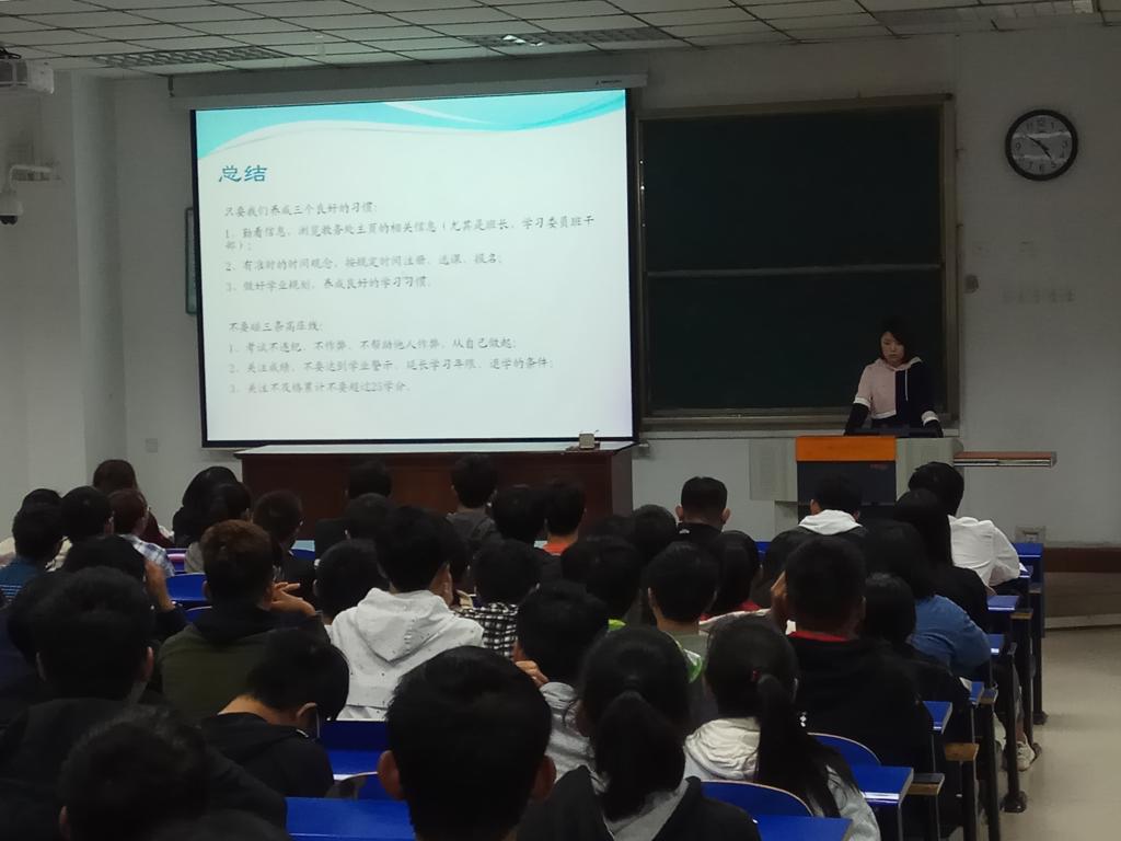 2018年9月25日在4号楼101,教学办原方老师为bat365平台官网18级新生普及了选课以及学籍教育的知识。