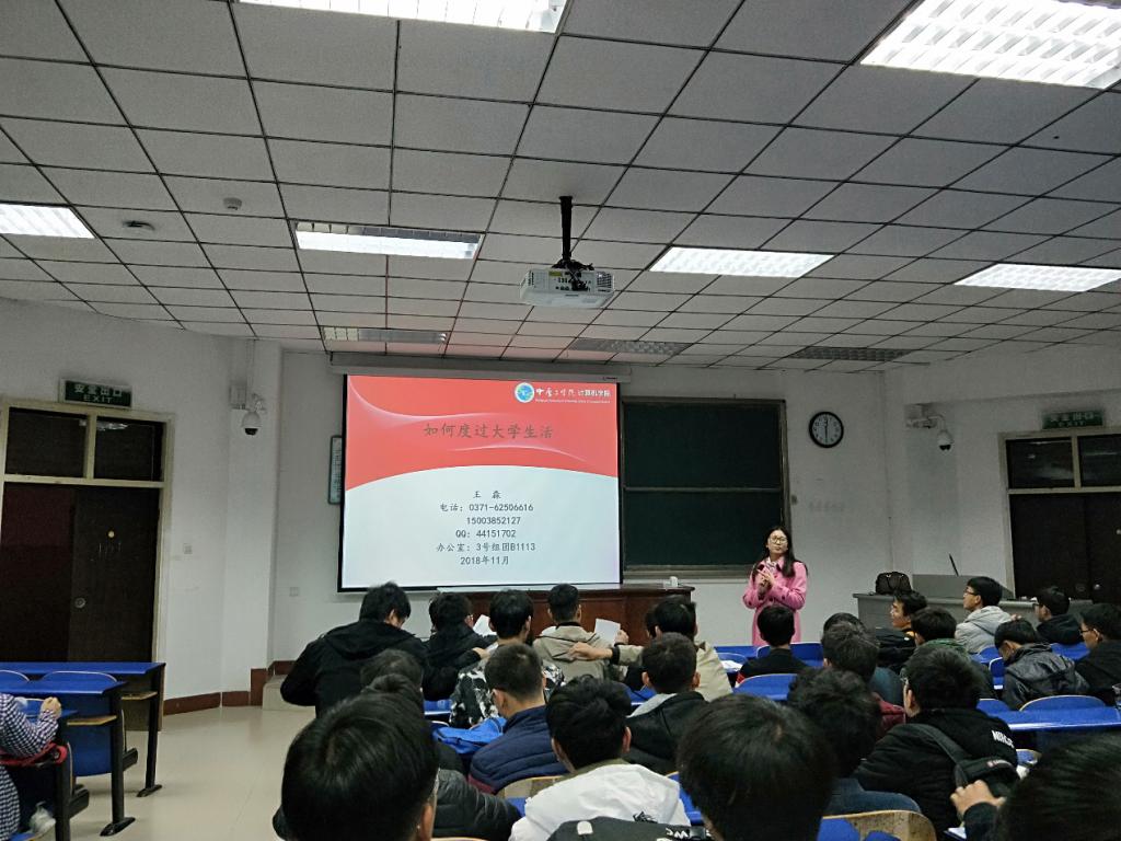 2018年11月26日晚上,党总支副书记王淼在四号楼101教室开展了主题为“如何度过大学生活”的入学教育。bat365平台官网一八级全体学生出席会议。