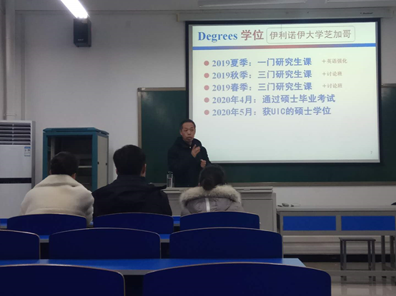 2018年12月26日下午,由bat365平台官网李向东老师,作为UIC推荐读研项目对接负责老师,为bat36515、16学生做项目介绍。UIC是芝加哥唯一公立研究型大学,计算机专业排名全球四十名之前,UIC和bat365建立了学术及人才培养合作关系,为推荐优秀学子继续读研深造提供了新的途径和机会。