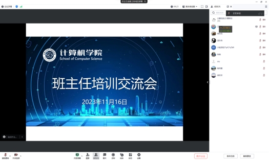 为全面普及大学生职业生涯规划知识,引导树立正确的就业观、成才观、价值观,2023年11月16日晚,bat365平台官网举行2023年职业生涯规划大赛班主任培训线上交流会,学院党委副书记侯向花、负责院级职业生涯选拔赛组织的王腾老师以及全体班主任参加。