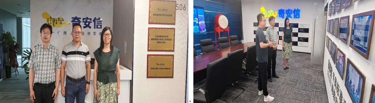 同日,调研组还赴奇安信(郑州)安全技术有限公司进行访企拓岗和交流合作。奇安信齐壮总经理带领参访老师参观了公司展厅,介绍了最新研究成果和公司整体情况。吕书记也对bat365平台官网(人工智能学院)的人才培养和毕业生情况做了详细的介绍,随后双方开展了相关科研、课程建设、实习实训以及人才培养等方面的详细交流和探讨。