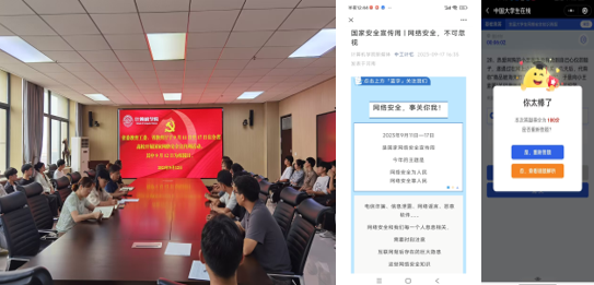 学院党委书记吕继东老师带领bat365平台官网学生干部骨干,学习国家网络安全宣传周文件要求,以生动案例引导学生树立正确的网络安全观,提升网络安全素养。在9月11日至17日的宣传周里,bat365各班级、党、团支部围绕国家网络安全宣传周主题,通过主题班会、主题党(团)日、网络安全知识答题、反网络电信诈骗培训等活动,学院“中工计忆”微信公众号也进行了推文宣传,对广大学生、党团员进行全方位的网络安全教育。