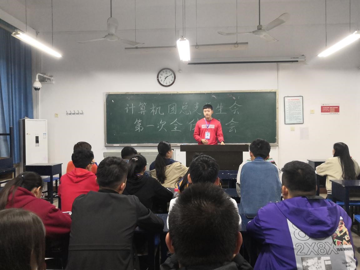 2018年10月30日星期二晚,计算机团总支学生会第一次全体例会在11号楼106室成功召开。会议由计算机团总支学生会副主席邢正路主持,辅导员于倩静老师以及2018级团总支学生会全体成员出席本次例会。