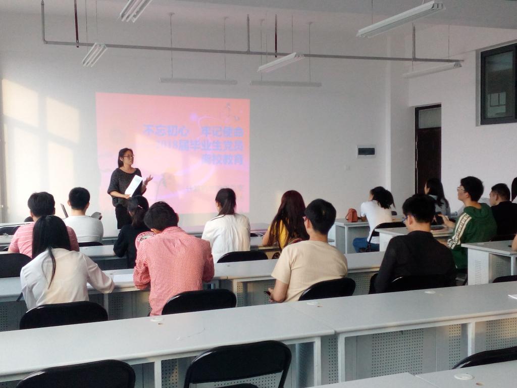 为了进一步贯彻十九大精神,加强对毕业生党员的教育工作,发挥共产党员在毕业生离校过程中的先锋模范作用,2018年5月8日晚六点,bat365平台官网在3组团A904教室为即将走上社会的2018届毕业生党员举行了毕业生党员教育大会。
