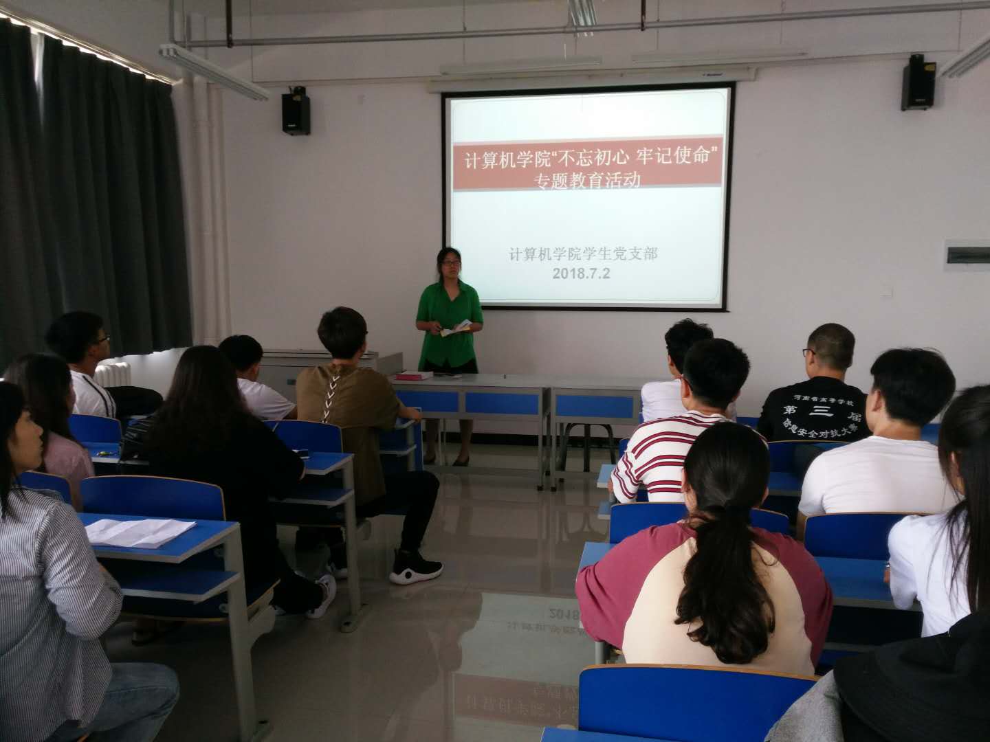 会上,侯向花老师首先宣读和传达了校党委下发的《中共河南省委组织部关于在“七一”期间认真组织开展以“不忘初心、牢记使命”为主题的支部党日活动的通知》,提出了本次bat365学生党支部活动的主题——不忘初心,牢记使命,助力学风建设,做新时代合格党员。