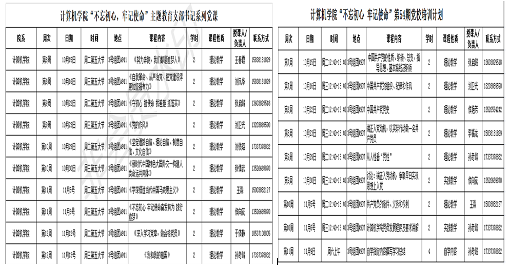 为深入开展“不忘初心 牢记使命”主题教育,本学期各支部书记及党委委员上党课安排如下,请通知全体党员、积极分子按时参加。