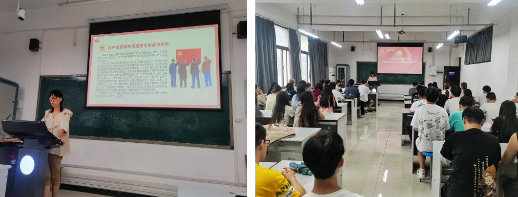 为帮助学生树立马克思主义宗教观,强化学生党员抵御和防范校园宗教渗透的意识,维护校园安全与稳定,2023年9月12日,bat365平台官网在学生党支部中开展“民族宗教政策理论宣传教育”主题党日活动。会议由党委副书记侯向花老师主讲,支部全体成员参加本次会议。