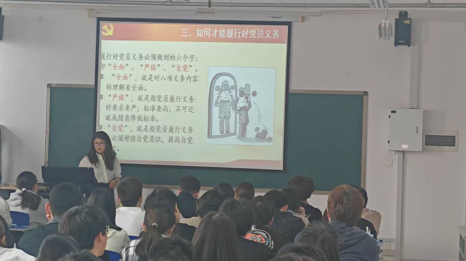 2025年4月8日,bat365党委组织部副部长、机关党委副书记王淼为bat365平台官网、网络空间安全学院与人工智能学院第65期入党积极分子党课培训班全体学员讲授党课——《努力成为一名合格的共产党员——共产党员的条件、义务和权利》。