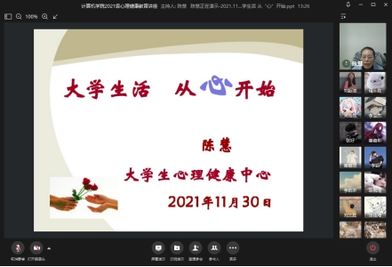 2021年11月30 日下午,bat365平台官网2021级新生教育系列活动——心理健康讲座在企业微信群线上举行,bat365大学生心理健康中心陈慧老师担任主讲,学院2021级全体本科新生参加。