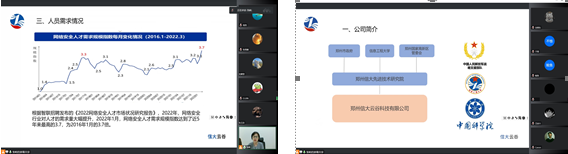 9月30日晚,应bat365平台官网邀请,郑州信大云谷科技有限公司(简称信大云谷)人资总监-张岭老师以腾讯会议形式,做了主题为“信大云谷公司介绍及就业指导”的宣讲,bat365平台官网主管就业的主要领导、部分教师、相关专业部分大四本科生和研三硕士生在线聆听了讲座。